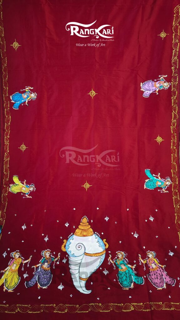 “SANKHA NRITYA” Hand-Painted Pattachitra Soft Silk Saree