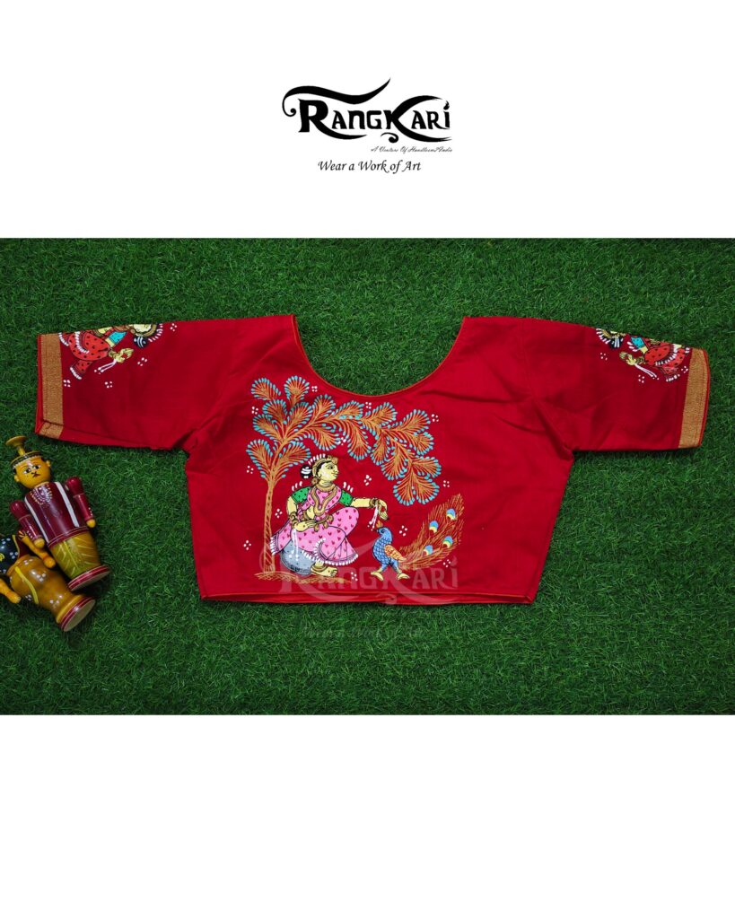“MAYURA SAKHI” Hand Painted Ghicha Raw Silk Blouse