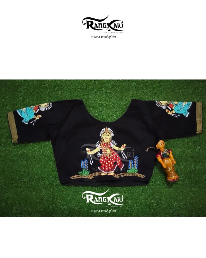 “SHYAM NRITYA” Hand Painted Ghicha Raw Silk Blouse