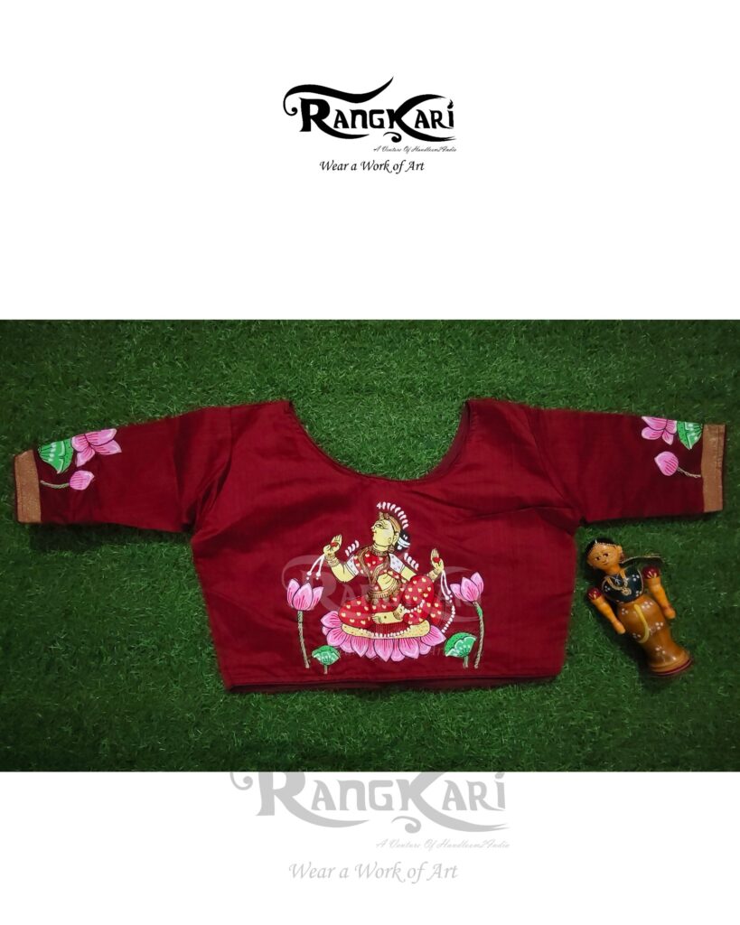 “PADMA LAKSHMI” Hand Painted Ghicha Raw Silk Patachitra Blouse