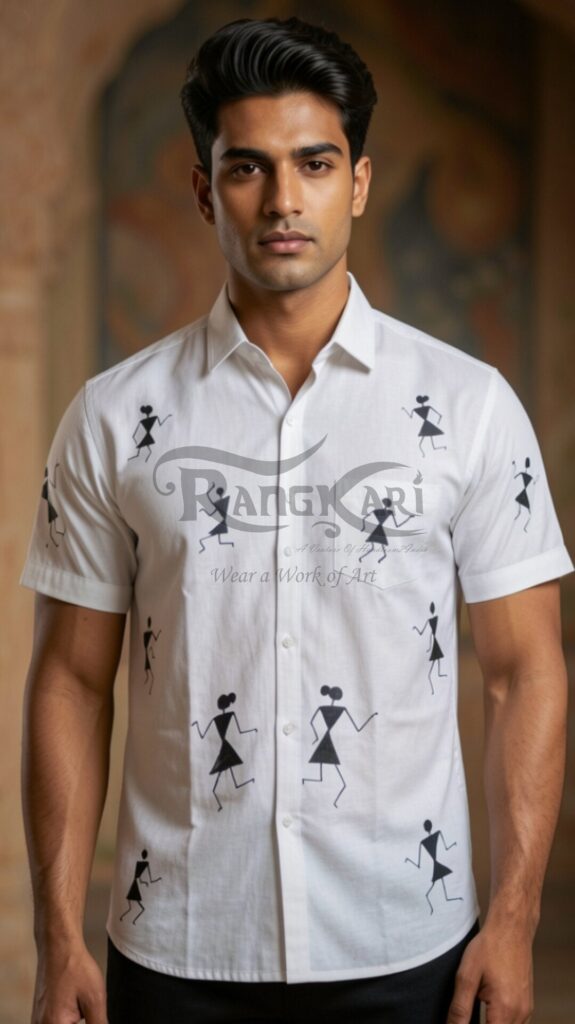 SHVETKAAR Hand-Painted Tribal Art Khadi Shirt