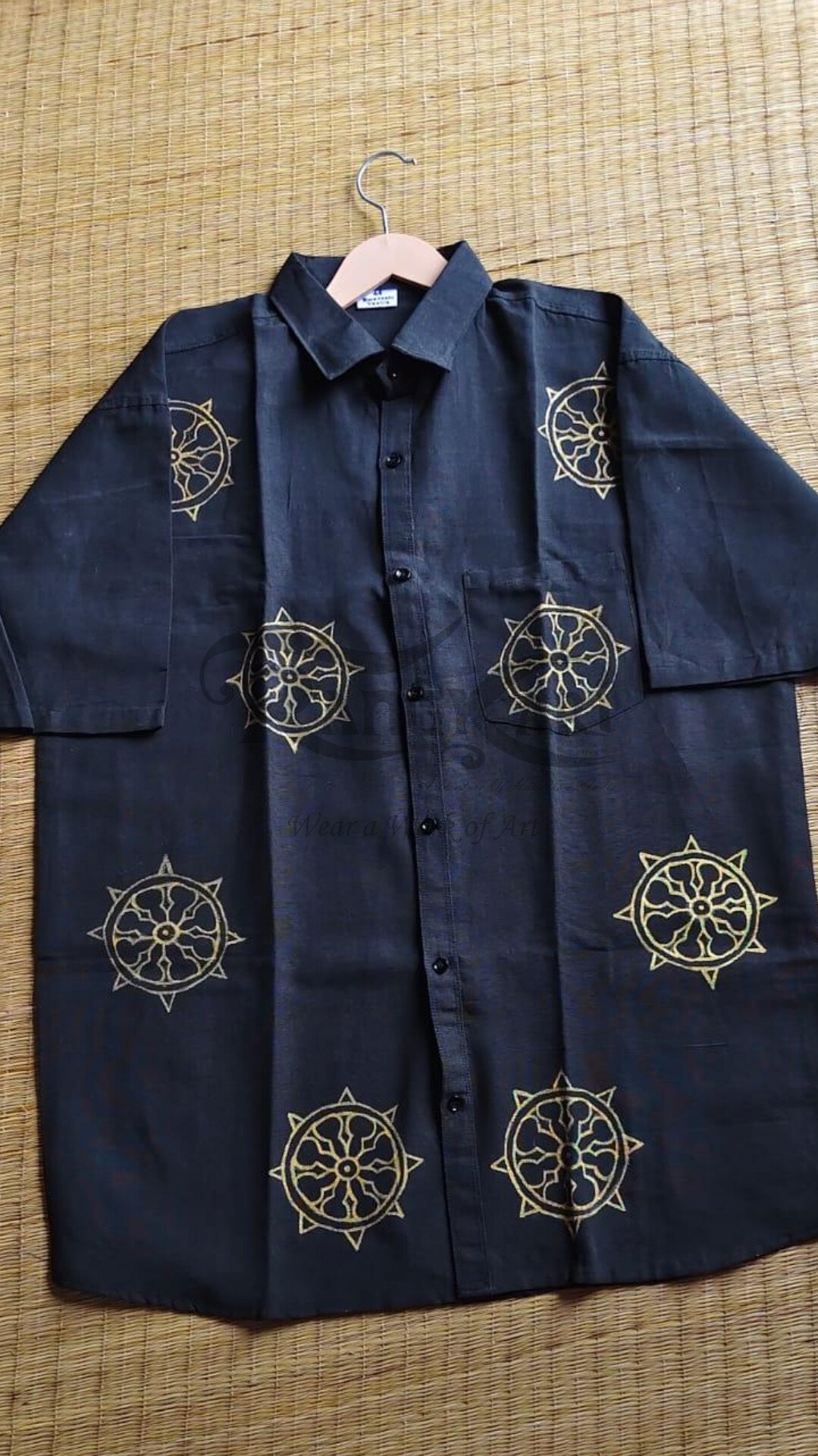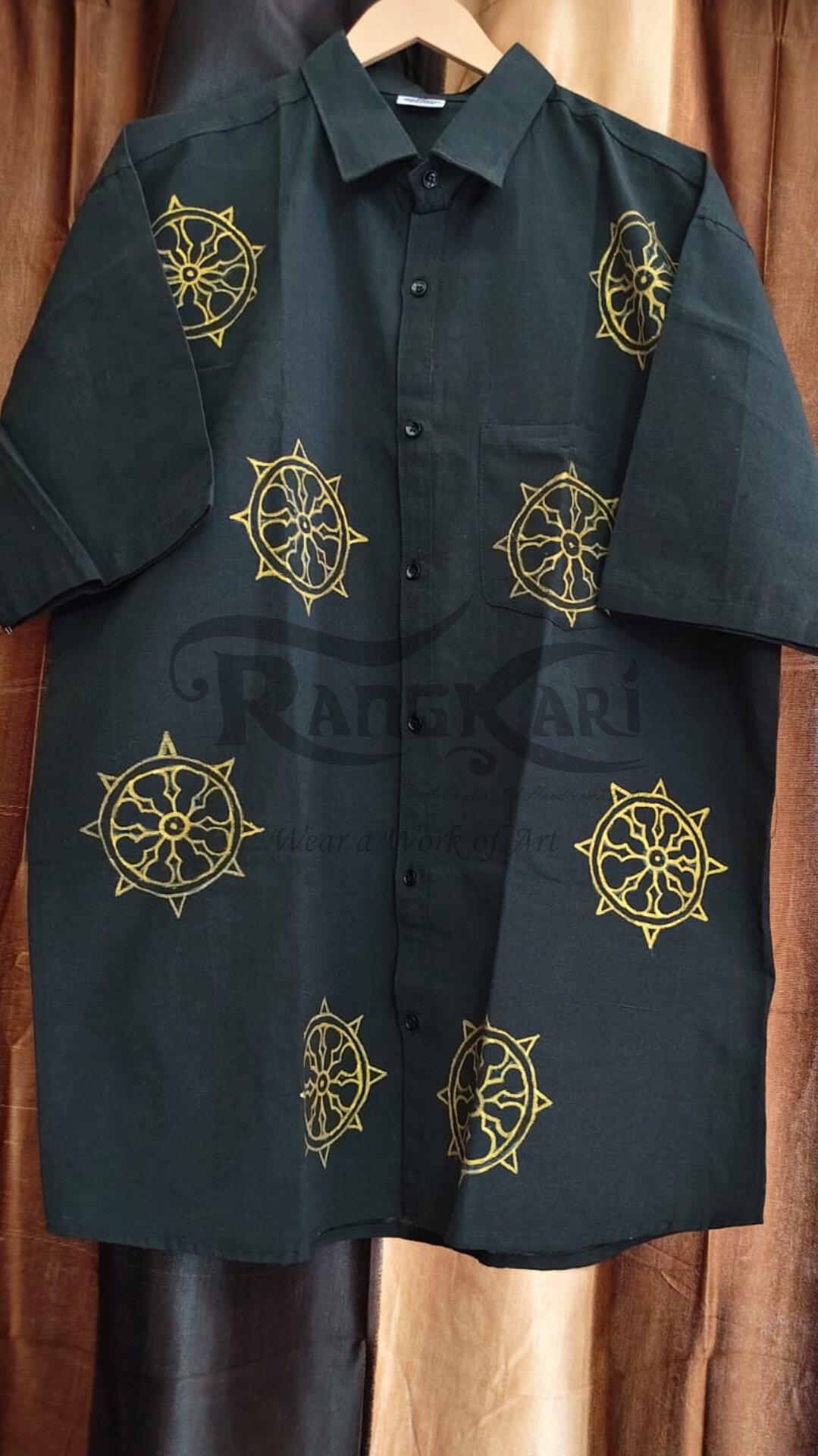 Be the first to review “BLACK ARKACHAKRA Hand Painted Khadi Half Shirt – Konark chakra Design”