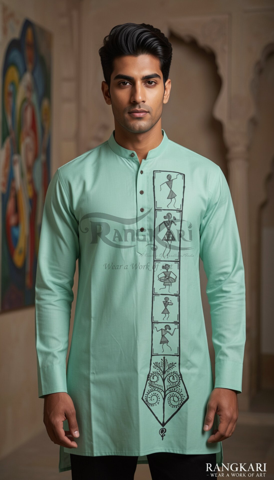 HARIT ADIVKAAR – Hand-Painted Tribal Khadi Kurta