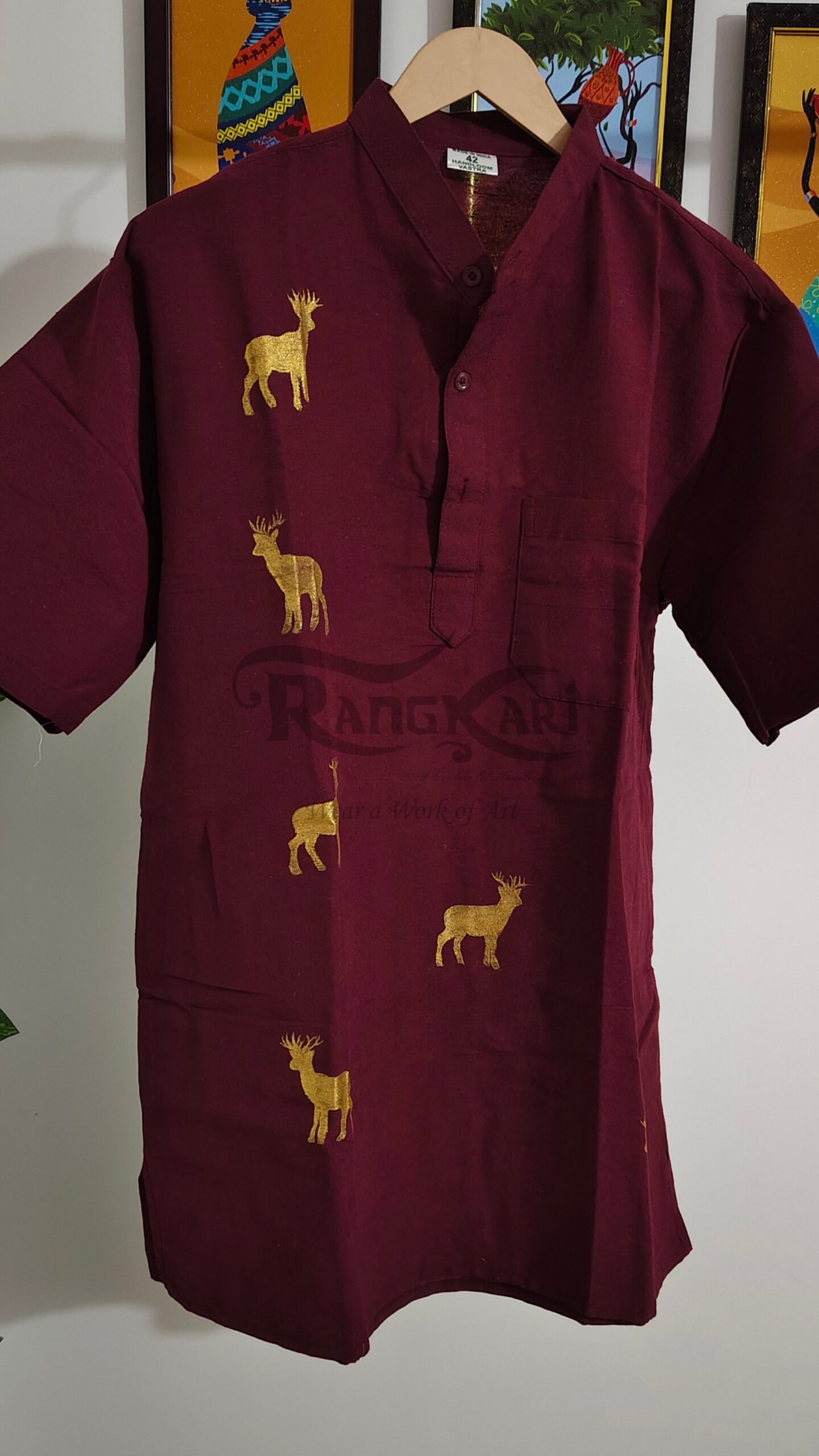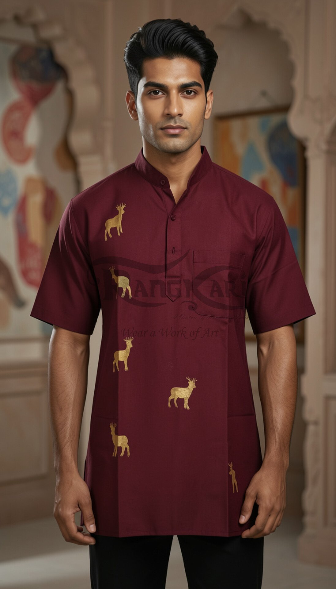MRIGAAKAAR – Hand-Painted Deer Motif Khadi Kurta