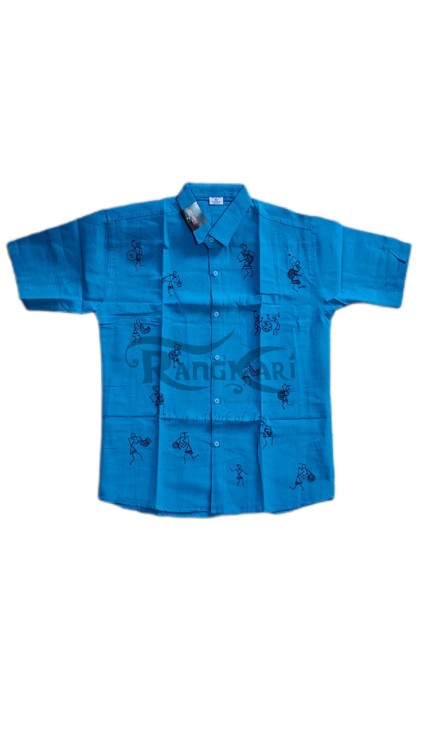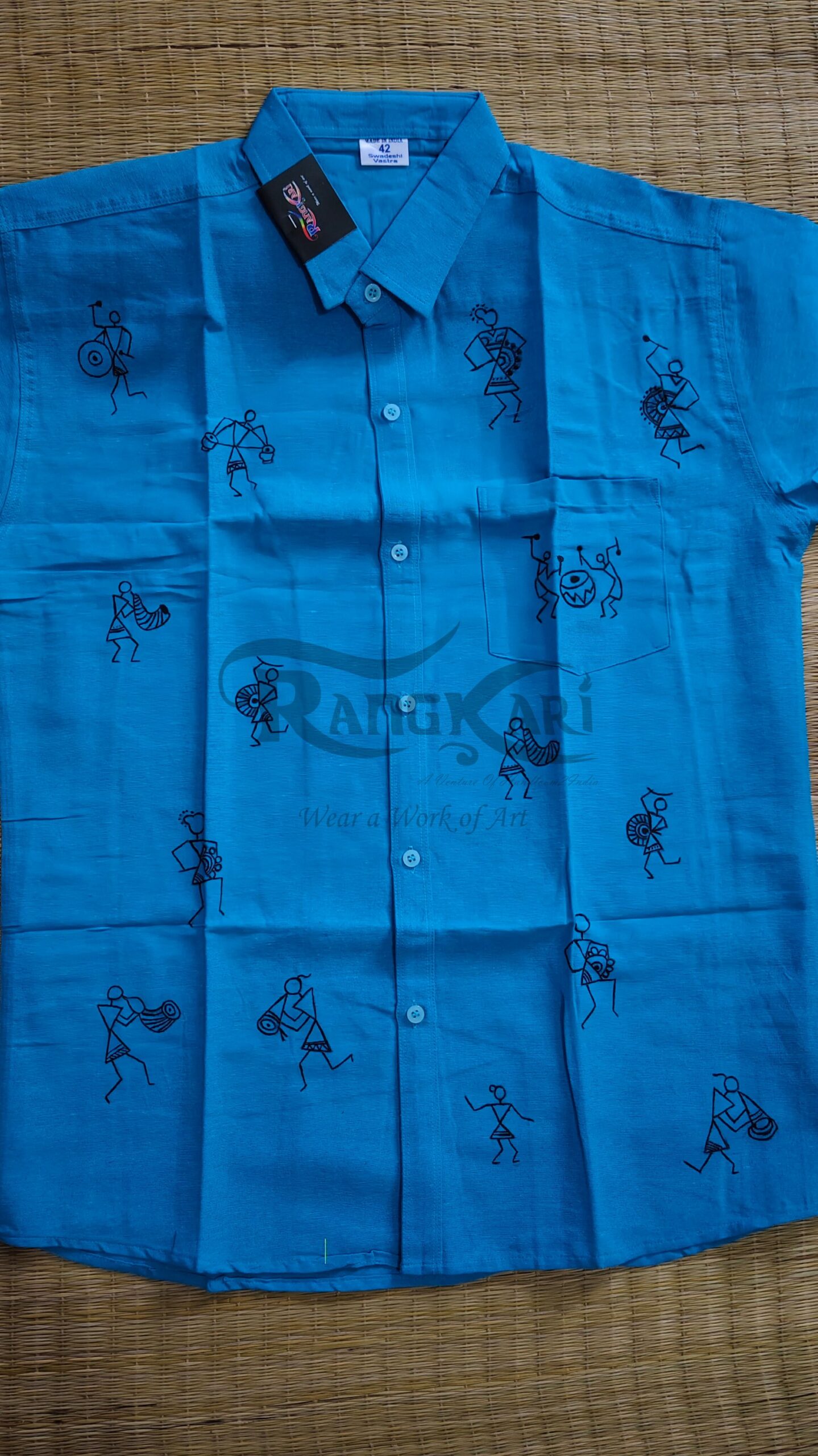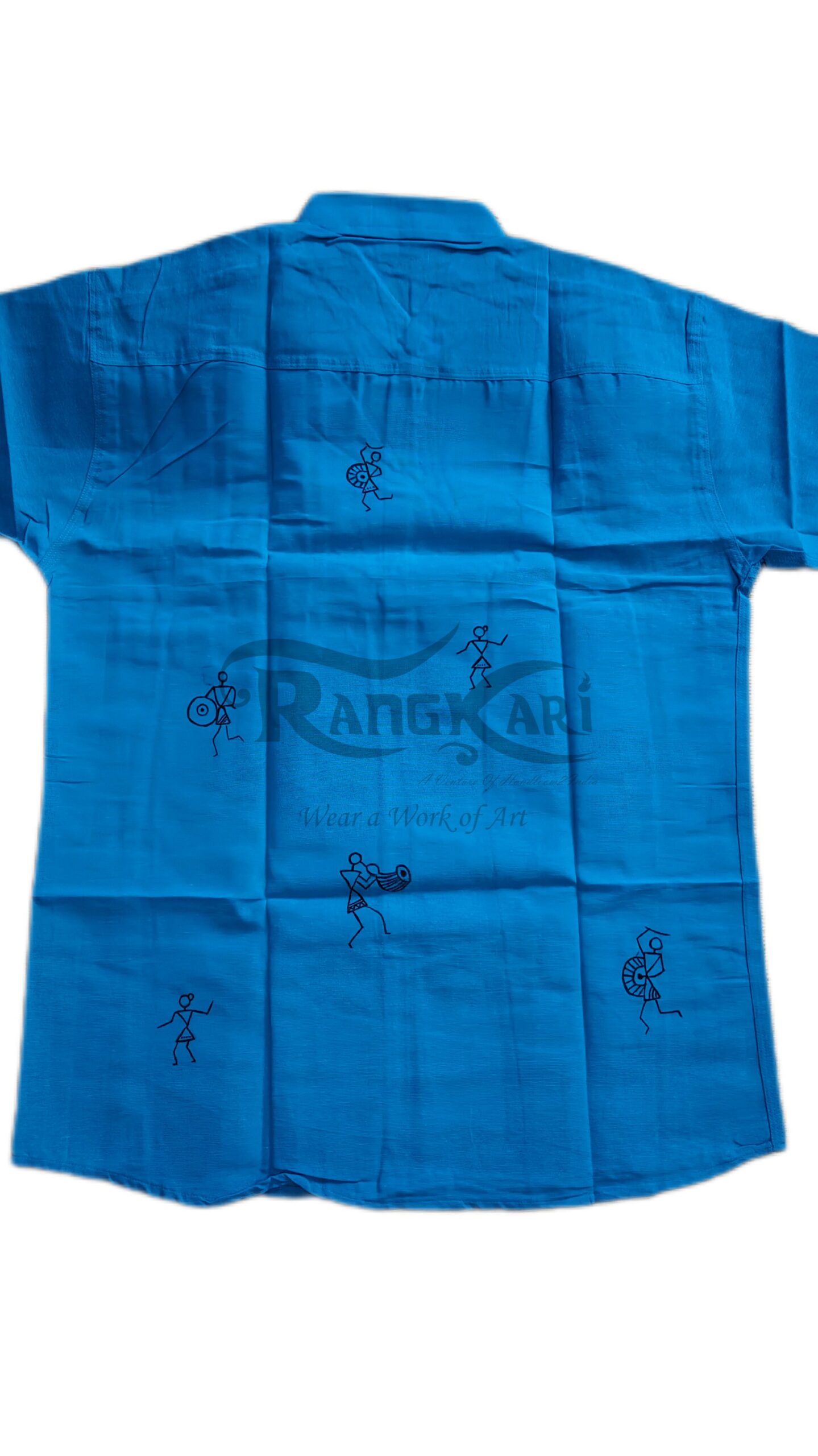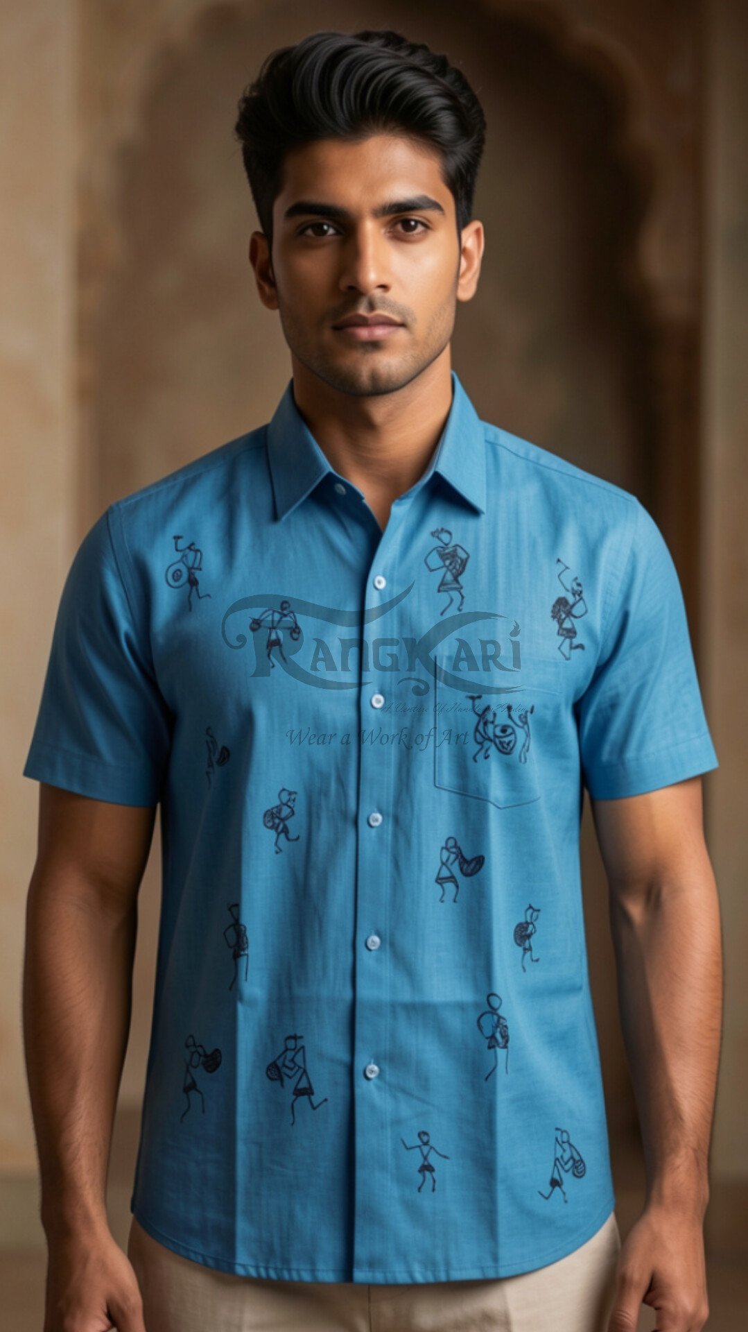 NEELREKHA – Hand-Painted Tribal Outline Khadi Shirt