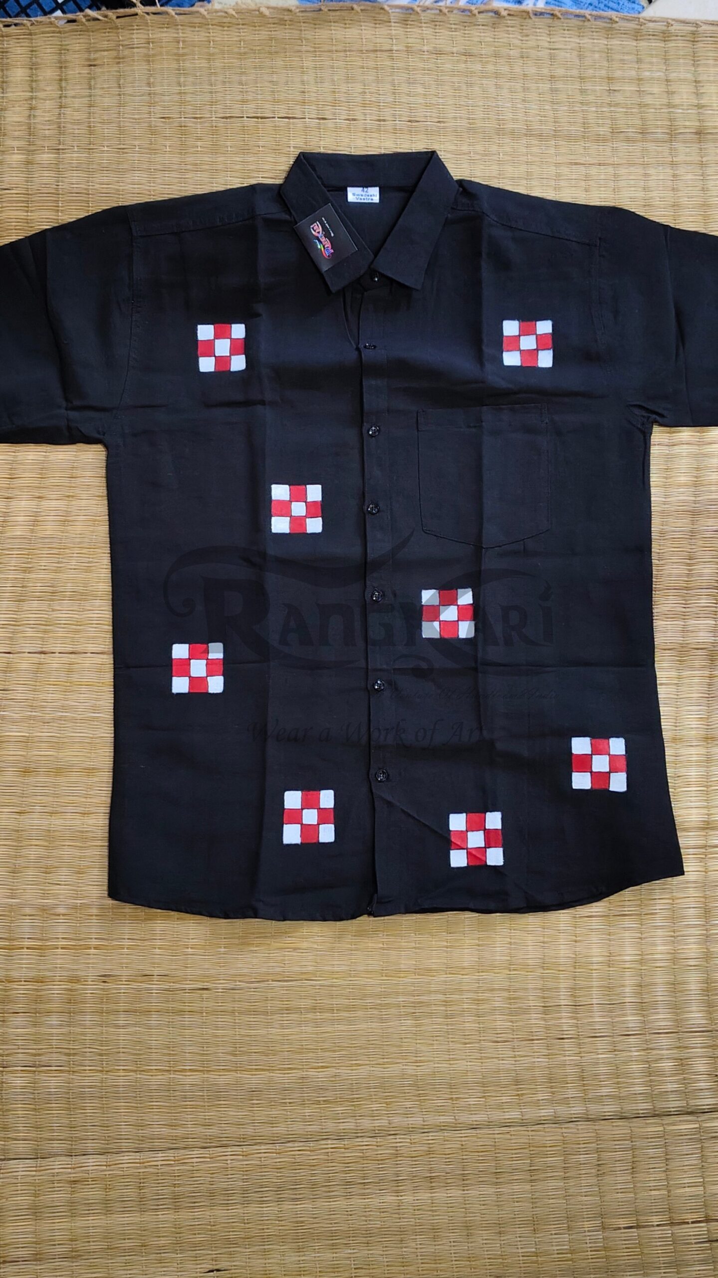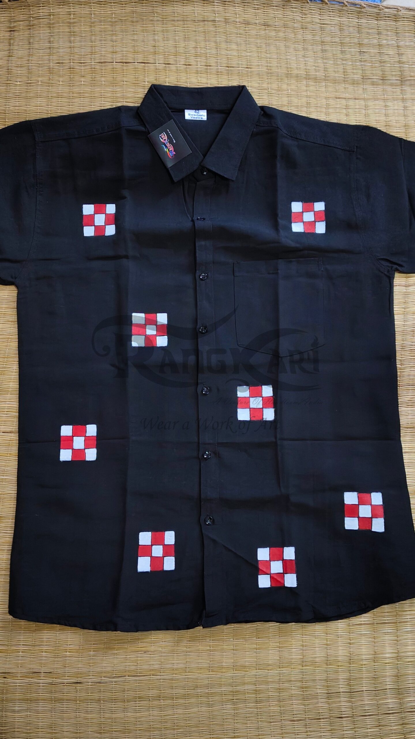 Be the first to review “PASAPKAAR Hand Painted Khadi Half Shirt – Pasapali Sambalpuri Design”