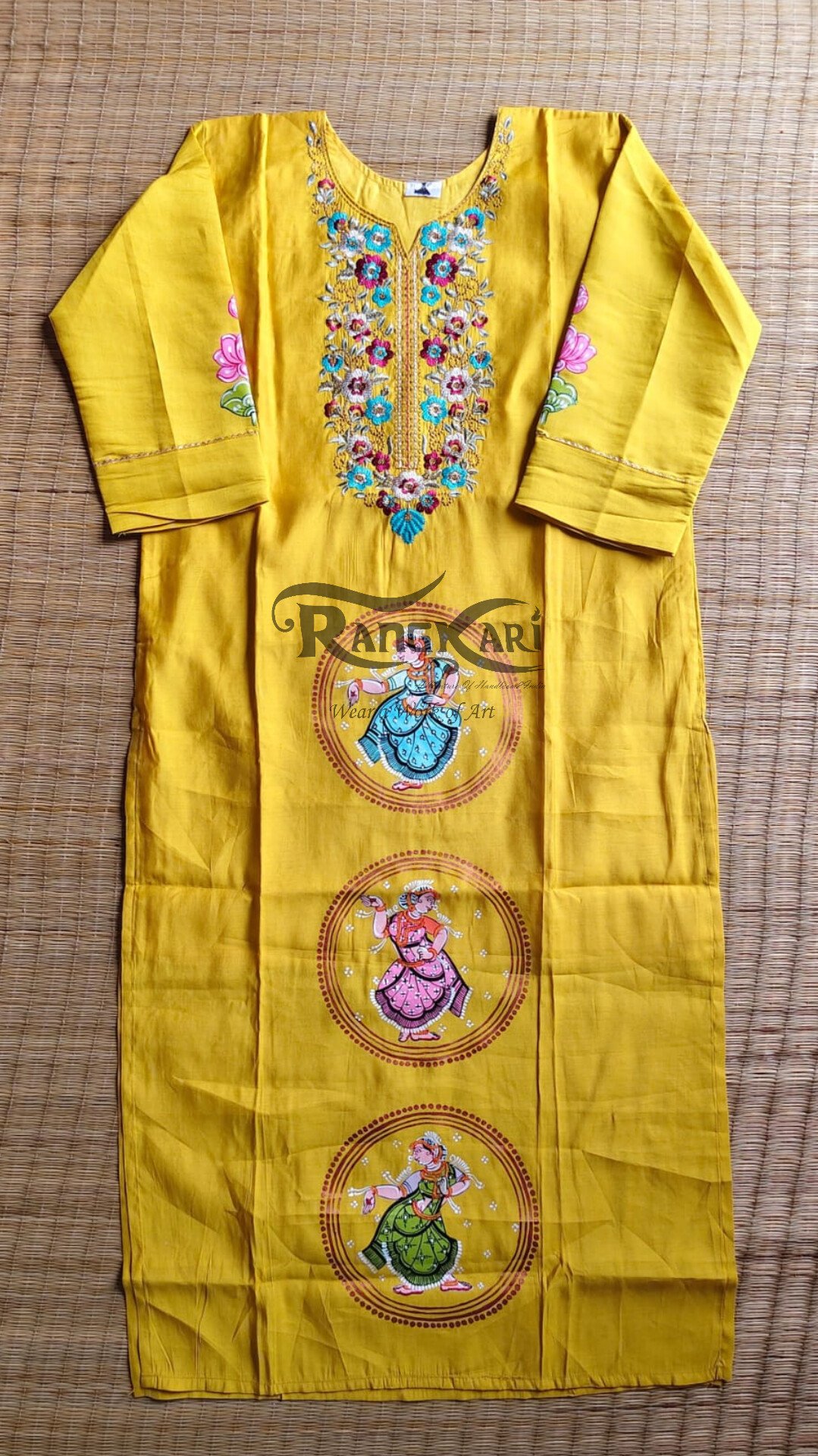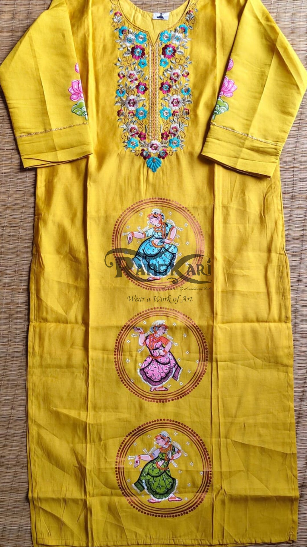 VARNIKA Hand Painted Pattachitra Silk Kurti – Dancer Design